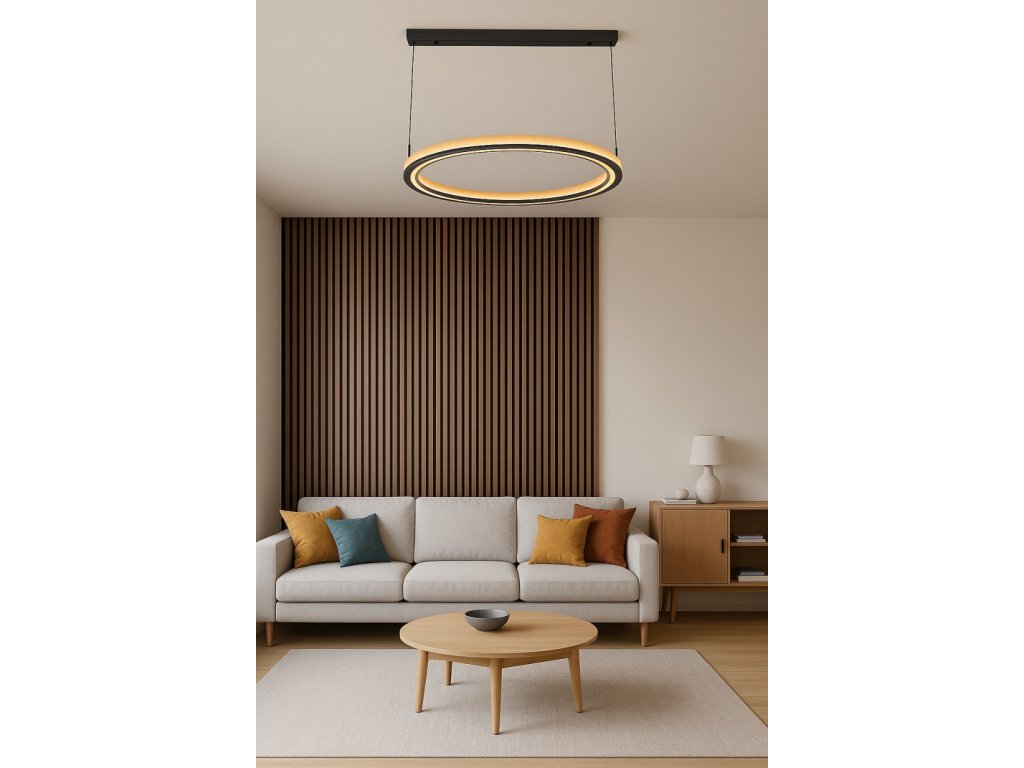 Svítidlo se vyznačuje dvěma světelnými kruhy z nichž jeden slouží jako přímé osvětlení prostoru pod ním a okolo něj a druhý má za úkol nepříme osvětlení, které nasvětluje jednak dřevěný dekor použitý na tomto svítidle tak i celý strop pro lepší dojem a atmosféru v místnosti.
